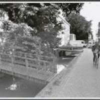 Peperstraat, aan de brug van het pand op nr. 1 reclamebord 'Bierlokaal Goudsche Gat', naast de aanleg voor een nieuwe brug -