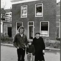 Houtmansplantsoen, echtpaar met kind poseren voor hun woning nr. 23 -