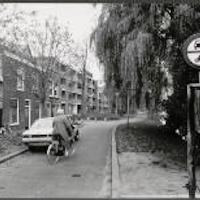 Het wandelpad in het Houtmansplantsoen langs de Fluwelensingel (rechts). - Afbeelding Hoek Lange Tiendeweg/Houtmansplantsoen, het pand op nr. 104 bestaat uit twee delen; een kapperswinkel en foto-etalage, beiden met bovenwoning.