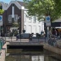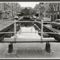 Turfmarkt, bankje op de Vrouwebrug. Aan het eind Kleiweg en Hoogstraat. -
