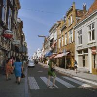 Winkelpanden aan de Markt (Koestraat) opgenomen vanaf de Hoogstraat.