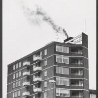 Albert Plesmanplein, zwarte rook uit de schoorsteen van de Tunnelflat -