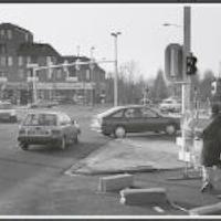 Bodegraafsestraatweg, verkeer op kruispunt Burg. van Reenensingel, met wegafzetting - Afbeelding Bodegraafsestraatweg, voormalig Rutgesterrein