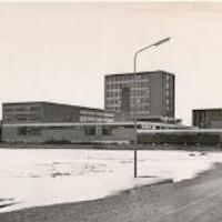 De Rijks Middelbare Landbouwschool aan de Ronsseweg met op de achtergrond een gedeelte van het complex van de Driestar.