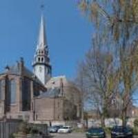 Steeds meer parkeerruimte nodig foto van de toren van de Jozefkerk, genomen vanaf de Keizerstraat op de hoek van de Komijnsteeg, 14-07-1962.