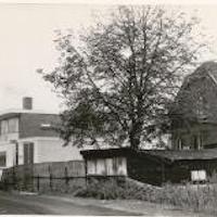 Oude en nieuwe bouw in Oosterwei: links nieuwbouw aan de Helene Rietbergstraat, rechts een oud huis aan de Voorwillenseweg. - Afbeelding Strookpolderstraat, woonwagenterrein, 16 maart 1999.