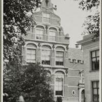 Het Willem Vroesenplein met rechts het Willem Vroesenhuis en achterin de Jeruzalemskapel en de linkerkant van het Weeshuis, ca. 1930.