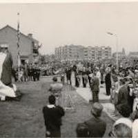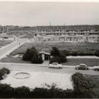 Flats aan de John Mottstraat met op de achtergrond de Bernadottelaan, 27 augustus 1967