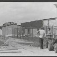 Groenhovenpark, werkzaamheden sportpark nog in volle gang, houten brug naar de nieuwe voetbalvelden