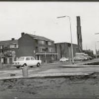 - Afbeelding De winkelgalerij aan het Van Hogendorpplein met de parkeerruimte voor de Pauluskerk. Links de Van Limburg Stirumstraat, uiterst rechts de auto (Renault) van KLM-piloot Harry de Leeuw.