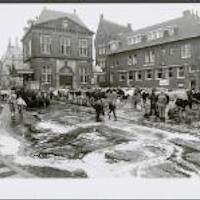 Achter de Waag, koeienmarkt wordt schoongespoten -