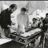 De Kortestraat, kinderen bij de barbecue bij wijkcentrum 't Wiel ter gelegenheid van het buurtfeest -