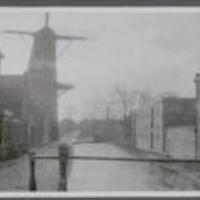 De Verlorenkost vanaf de Raam westwaarts (na de demping van 1930; molen afgebroken 14/15-04-1949) met links de molen De Korenbloem van 1751 op de hoek van de Vest. ca. 1935 -