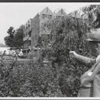 Houtmanspad, oud-directeur scheepstuigerij Endenburg wijst naar Schouwburglaan en Kunstmin waar tunnel naar ondergrondse parkeergarage zou moeten komen.