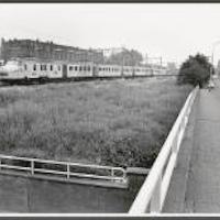 Noothoven van Goorstraat, woningrij tegenover voorbijrijdende trein -