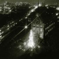 Het verlicht stadhuis en de Markt tijdens kaarsjesavond, 6 januari 1983. Opname vanaf St. Janskerk. - Afbeelding Het verpleeghuis Bloemendaal vanaf de Bloemendaalseweg, 1983.