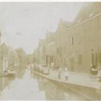 De noordzijde van Achter de Vismarkt vanaf de Lage Gouwe. ca. 1900, -