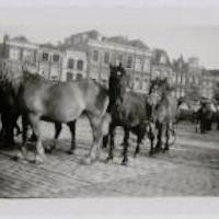 Vordering van paarden en motorvoertuigen op de Markt tijdens de mobilisatie, 29 augustus 1939. Paarden op de Nieuwe Markt. -