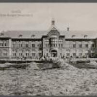 Frontale opname van de Rijks HBS met de ingang aan de Burgemeester Martenssingel. ca. 1920, -