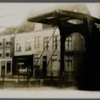 De voormalige watermolen van de polder Bloemendaal aan de Gouwe op de plaats van de latere nieuwe spoorbrug, waarvoor deze molen moest wijken. ca. 1920, -
