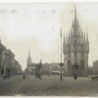 De Markt met het stadhuis centraal, opgenomen vanaf de St.-Janstoren voor de vervaardiging van een ansichtkaart, ca. 1910. -