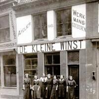 Lange Tiendeweg 10 en 12, atelier van werkmansgoederen De Kleine Winst, ca. 1910. -