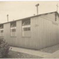Vluchtelingenkamp Graaf Florisweg voor Belgische vluchtelingen uit de 1e wereldoorlog, ca. 1916. Het exterieur van de noodkapel van de H. Petrus. -