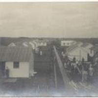 Verschillende situaties in het vluchtoord voor Belgische vluchtelingen in de 1e wereldoorlog aan de Graaf Florisweg. c. 1916. Gezicht op een aantal houten barakken. -