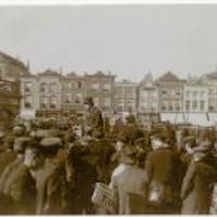 Jacob Hollander, pedicure of eksteroogsnijder, op de Markt, 19 oktober 1904. (Hij was de vader van de legendarische voetbalverslaggever Han Hollander) -