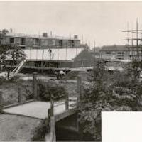 De Houtenstraat noordwaarts, mei 1961. - Afbeelding De in aanbouw zijnde Jan Ligthartschool in de wijk Korte Akkeren, 24 juni 1961. Een deel van het nieuwe gebouw bestaande uit twee vleugels met een verbindingsstuk.