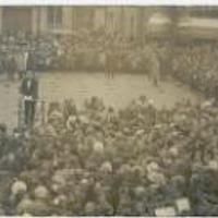 Festiviteiten t. g. v. het 25-jarig regeringsjubileum van koningin Wilhelmina, 31-8-1923. Een kinderzanghulde op de Markt. Bij het kruisje A.R. van de Putte. -
