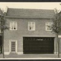 Raam, garage met bovenwoning, ca. 1955. - Afbeelding Slappe bodem vertraagt uitvoering, aanleg straat Goejanverwelledijk bij nieuwe Haastrechtsebrug, genomen in oostelijke richting, ca. 1955.