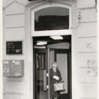 Ingang van het postkantoor aan de Westhaven 37 met rechts postzegelautomaten, 2-11-1976.