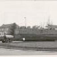 Zwaar transport rijdt over het Albert Plesmanplein, 01-04-1971.