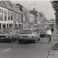 De Blekerssingel met verkeer, augustus 1986. Opname vanaf de Schouwburglaan richting garagebedrijf Huiden. -