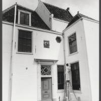 - Afbeelding Nieuwe Veerstal, achterzijde gerestaureerde en wit geschilderde sluiswachterswoning bij het oude Tolhuis, gezien vanaf de Oosthaven