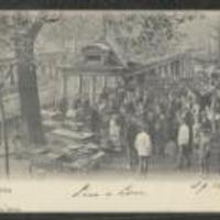 Het station van de spoorwegen aan de zijde van het Stationsplein westwaarts. ca. 1905. -
