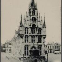 De voor- en westzijgevel van het stadhuis op de Markt. c. 1901. -