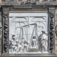 Reliëf 'Het weegbedrijf' van Bartolomeus Eggers (ca. 1637-1692) in de gevel van de Waag -