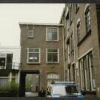 Vossenburchkade, voormalige sigarenfabriek van Donker, zijgevel met ingang naar binnenplaats, 3 mei 1996.